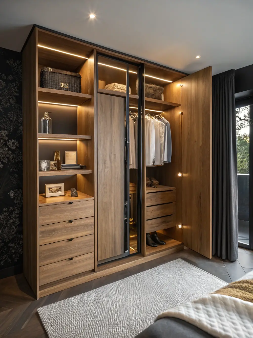 - Seamless built-in bedroom closets with elegant finishes